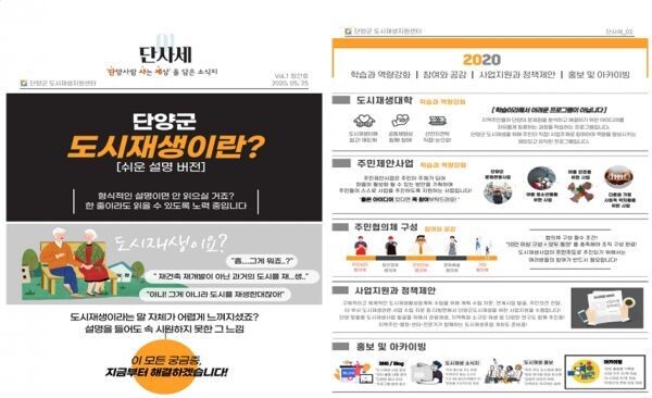 ‘단사세’ 소식지는 창간호를 시작으로 연 4회 발간될 예정이며 군의 도시재생사업 정보를 주민들과 공유하면서 다양한 현장의 목소리를 소식지에 실을 예정이다.