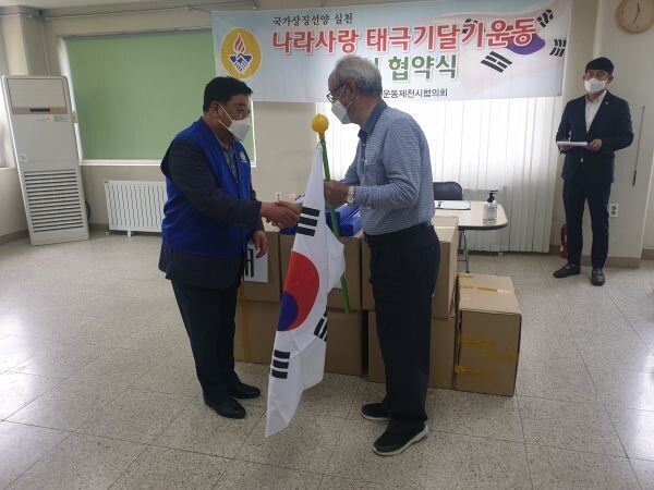 [무한뉴스] 바르게살기운동 제천시협의회는 지난 3일 강제동 강저휴먼시아2단지아파트에서 시 협의회 임원 및 주민 10여명이 참석한 가운데 ‘나라사랑 태극기 달기 운동 협약식’을 개최했다.
