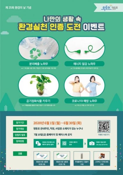 [무한뉴스] 영등포구가 ‘제25회 환경의 날’을 맞아 6월 한 달 동안 온·오프라인 이벤트를 열며 구민들에게 환경의 중요성을 인식하는 기회를 마련했다.