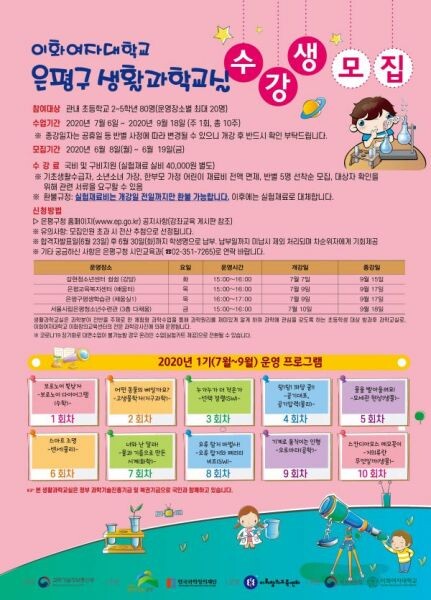 [무한뉴스] 은평구는 관내 초등학생을 대상으로 이화여자대학교 창의교육센터와 연계한 ‘은평구 생활과학교실’을 7월부터 9월까지 운영한다고 밝혔다.