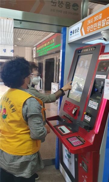 특히 군청 청사 공간 부족으로 각 부서의 사무실이 분산되어 민원인에게 혼선을 주고 있어, 자원봉사자의 민원안내로 군민 불편을 최소화 하고 청사입구로 이동 설치된 무인민원발급기 이용법 안내 등으로 군민 감동의 민원행정 서비스를 제공할 수 있을 것으로 기대된다.