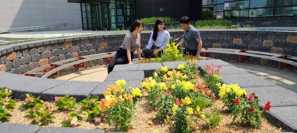 블록 사이 공간에는 오색패랭이, 분홍꼬리풀, 큰금매화, 골무초 등 30여종의 야생화 등이 심어져 독특한 경관을 제공한다.