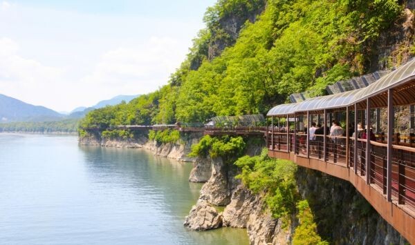 총 연장 중 800m 구간은 강과 맞닿은 20m 암벽위에 설치돼 강물 위에 떠 있는 환상과 함께 걸을 때마다 짜릿한 스릴과 재미를 온몸으로 체험할 수 있다.