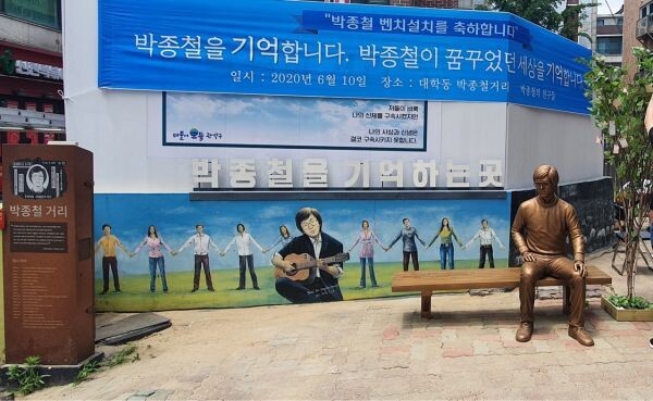 벤치 제작을 함께한 기념사업회에서는 “박종철 열사가 가장 치열하고 행복한 시간을 보냈던 이곳에서 편안히 머물 자리를 마련해 주고자 한다”며 ‘박종철벤치’ 조성 의미에 대해 설명했다.