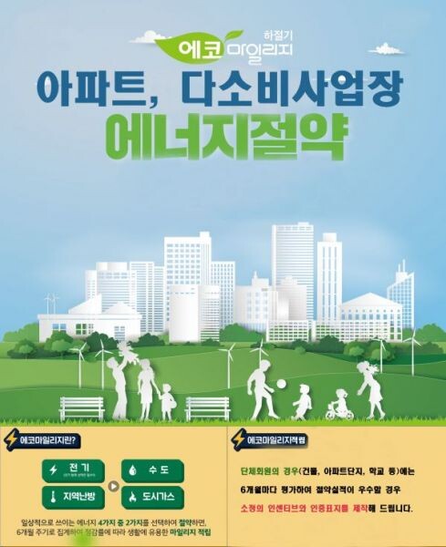 6개월 동안의 에너지 사용량을 최근 2년 평균과 비교해 5~15% 이상 절감한 경우 1만~5만 마일리지를 준다.