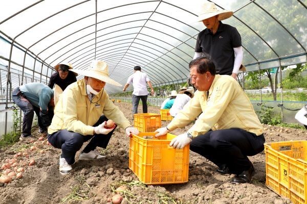 [무한뉴스] 충북 옥천군이 코로나19 여파로 농번기 인력난을 겪고 있는 관내 농가를 위해 옥천군청 공무원 전체가 농촌일손 돕기에 나서 지역농가로부터 큰 호평을 얻고 있다.