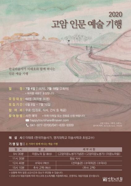 [무한뉴스] 홍성군 고암이응노 생가기념관에서는 2020년도 문화프로그램으로 이응노 화백을 선양하기 위한 ‘고암인문예술기행’을 운영할 예정이다.