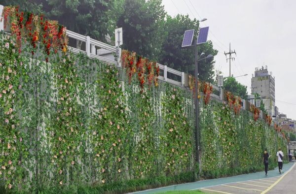 먼저 식생기반 조성을 위해 도림천 제방변에 368개의 식생플랜터를 설치했으며 다양한 색상의 덩굴장미 3,456본과 남천 등의 관목류 4,484주를 식재해 다양한 색감의 경관을 조성했다.