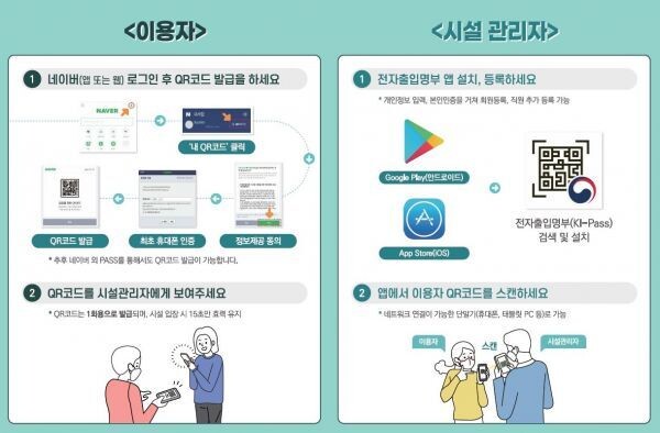 한편 QR코드 인식을 통해 수집된 개인별 정보는 네이버 등 QR코드 발급회사의 서버에 저장·관리되고 시설방문 정보는 사회보장정보원 서버에 암호화되어 분산 보관되며 4주 후 자동 폐기된다.