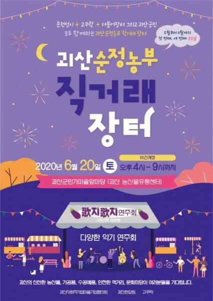 [무한뉴스] 코로나19로 어려움을 겪고 있는 지역 농가를 돕기 위한 ‘괴산순정농부 직거래장터’가 오는 20일부터 야간개장을 시작한다.