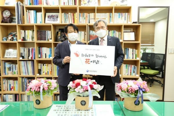 코로나19로 어려움을 겪고 있는 화훼 농가를 돕고 관내 지역아동센터 24개소 종사자·아동들과 선별진료소 3곳의 의료진을 응원하기 위해 꽃바구니를 마련했다고 밝혔다.