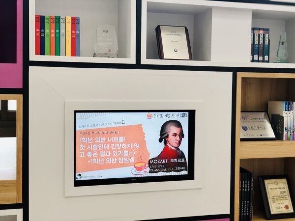 오늘은 청원고등학교 중앙 현관에 모차르트 교향곡 41번 K.551이 울려 퍼졌고 2학년 선배들이 1학년에게 전하는 메시지들이 영상마다 띄워졌다.