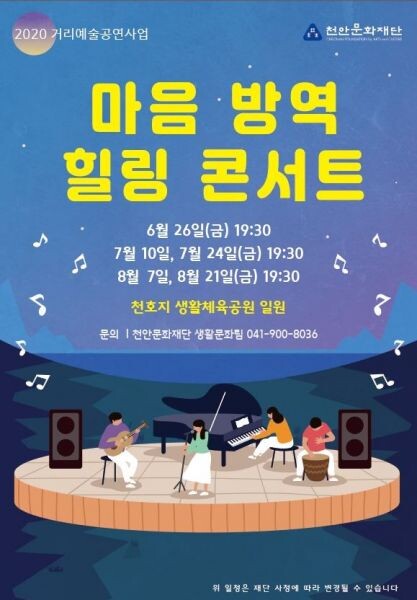 [무한뉴스] 천안문화재단은 코로나19 장기화로 지친 천안시민에게 응원과 희망을 전하기 위해 2020 거리예술공연 ‘마음방역, 힐링 콘서트’를 개최한다고 밝혔다.