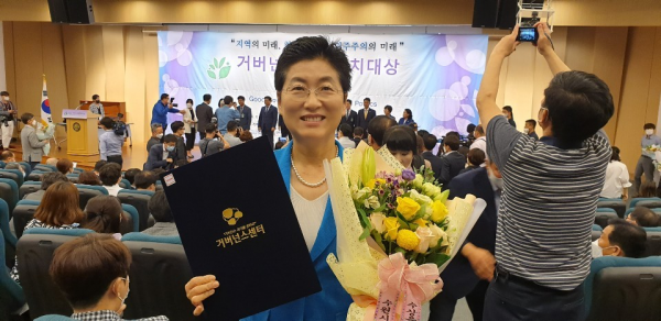 [무한뉴스] 서울특별시의회 환경수자원위원회 유정희 시의원이 지난 24일 국회 도서관 강당에서 열린 '2020거버넌스 지방정치대상 공모대회'에서 지방의원 부문 공동체역량 증진분야 우수상을 수상했다.