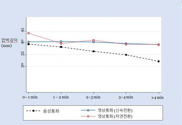 영상통화로 지도를 받았을 때 음성통화 대비 흉부압박 깊이는 평균 5mm 깊었고 흉부압박 위치를 찾는 비율도 10% 이상 높았다.