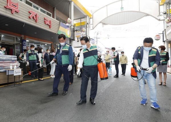 이들은 괴산전통시장 내 다중 접촉 시설물, 상가, 공중화장실 등을 중심으로 꼼꼼히 방역소독을 실시하고 상인과 주민을 대상으로 코로나19 예방수칙도 적극 홍보했다.