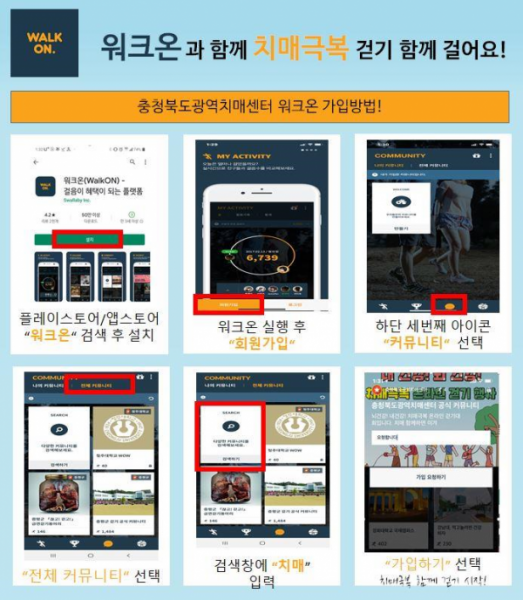 대중의 치매에 대한 경각심을 고취하고 치매에 대한 편견을 불식시켜 치매와 더불어 살아가 수 있는 사회적 공감대 형성 및 치매친화적 환경조성을 위한 사업 캠페인 참여는 걷기 플랫폼인 ‘워크온’ 앱을 통해 치매에 관심이 있는 남녀노소 누구나 참여할 수 있다.