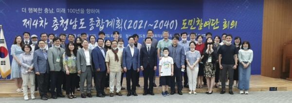 [도민참여단 회의]는 기관추천과 공개모집을 통해 총 115명의 도민참여단을 위촉한 후 충남 도정 전반에 대한 의견을 청취한 후 이를 충청남도 종합계획 수립에 반영하기 위한 것이다.