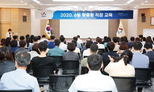 [무한뉴스] 서산시는 지난 30일 시청 대회의실에서 직원 150여명을 대상으로 6월 맞춤형 직장교육을 실시했다.