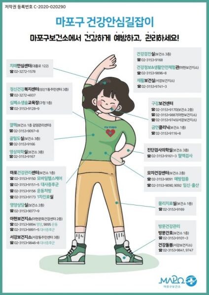 [무한뉴스] 마포구가 사람의 각 신체 부위에 따른 보건소 의료서비스 정보를 한 눈에 알아볼 수 있게 제작한 ‘마포구 건강안심길잡이’를 7월부터 누리집과 SNS를 통해 일반에 제공한다고 밝혔다.