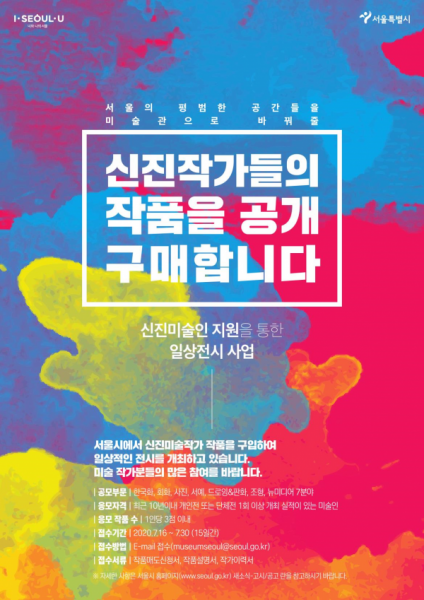 오는 7월 16일~7월 30일 15일간, 온라인 접수가 진행되고 구입 작품은 9월 11일 서울시 홈페이지를 통해 발표할 예정이다.