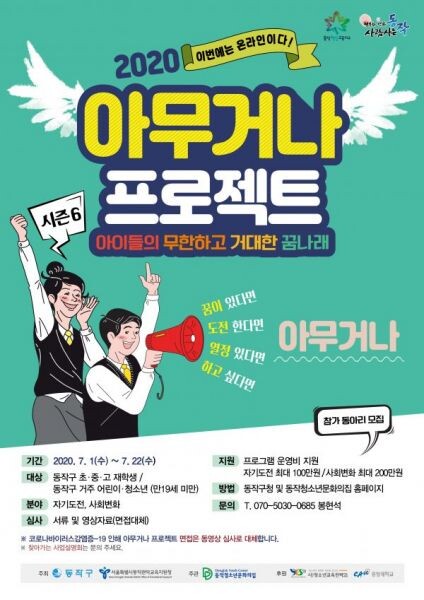 [무한뉴스] 동작구가 오는 22일까지 관내 19세 미만 학생들을 대상으로 ‘아무거나 프로젝트’ 사업에 참여할 100여 개 팀을 공모한다고 밝혔다.