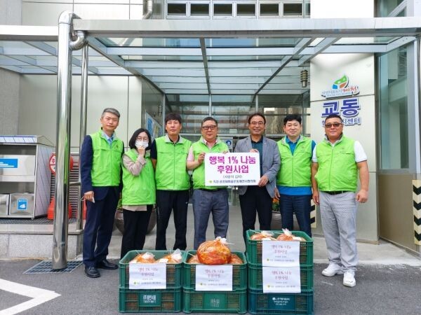 이날 전달받은 김치는 회원들이 모은 행복1%나눔 후원금으로 마련됐으며 센터에서는 김치를 담기 어려운 관내 저소득 독거노인, 장애인가구 등 15가구를 선정해 가구당 김치10kg을 전달했다.