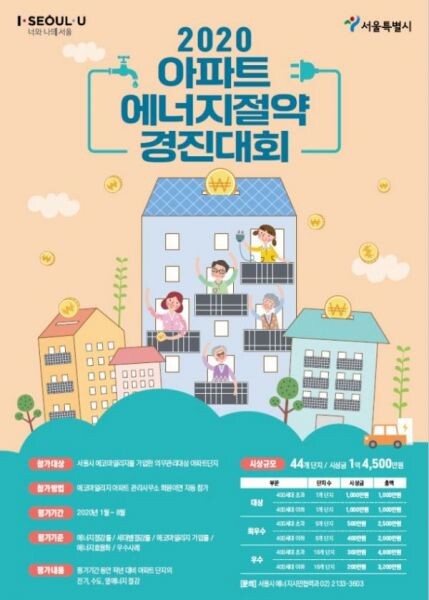 올해 1월부터 8월까지의 실적으로 선정하며 평가기준은 전년도 동일 기간과 비교한 전기·수도 사용 절감률 세대당 전기 절감량 에코마일리지 가입률 미니태양광 발전소 설치 실적 등 에너지효율화 절약실천 우수사례 등 5개이다.