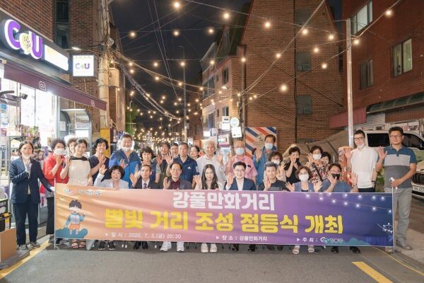 [무한뉴스] 강동구가 지난 7월 3일 야간경관개선을 위해 강풀만화거리 내 상가밀집 이면도로에 LED 스트링라이트로 별빛 거리를 조성하고 점등식을 개최했다.