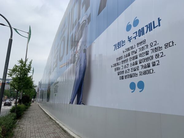 [무한뉴스] 은평구는 대조동 청년주택 건설에 따라 공사현장 임시가림벽에 청년에게 보내는 희망메세지를 담은 디자인을 개발, 적용했다.