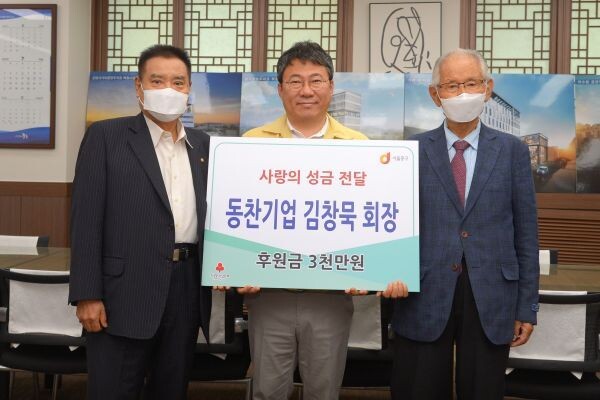 [무한뉴스] 중구가 지난 8일 오후 5시 중구청 3층 구청장실에서 동찬기업 김창묵 회장으로부터 후원금 3000만원을 전달받았다.