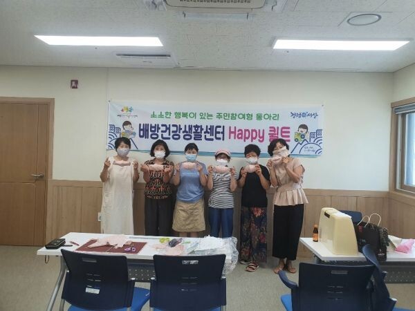 [무한뉴스] 아산시보건소 배방건강생활지원센터 해피퀼트동아리가 지난 8일 코로나19 확산으로 어려움을 겪고 있는 관내 취약계층 아파트 어르신을 위해 여름용 면마스크 만들기 재능기부에 나섰다.