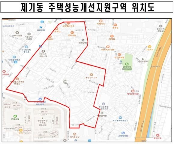 이번에 주택성능개선지원구역으로 지정된 곳은 제기7 재개발정비예정 해제지역이다.