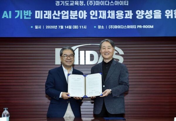 이날 협약식은 성남 마이다스아이티 9층 컨퍼런스룸에서 이재정 교육감과 이형우 대표이사 등 업무 관계자 20명이 참석한 가운데 진행했다.