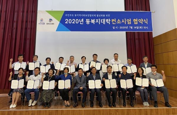 이날 개최 된 컨소시엄 협약식에서 동복지대학을 운영하고 있는 ‘8개동 지역사회보장협의체’와 ‘8개 동주민센터’, ‘4개 복지기관’의 기관장이 한자리에 모여 상호 존중과 신뢰로 동복지대학 운영 전반에 적극 협력할 것을 약속했다.