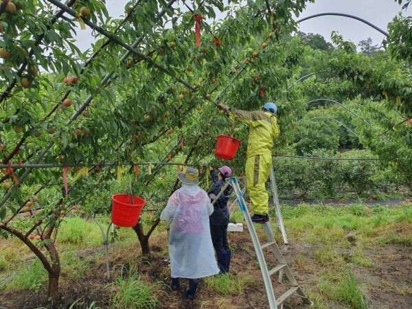최근, 손을 심하게 다쳐 병원 치료중인 용화면 소재 자두 농가를 방문해 수확 작업을 도우며 일손이 부족한 농가에게 효자노릇을 톡톡히 했다.