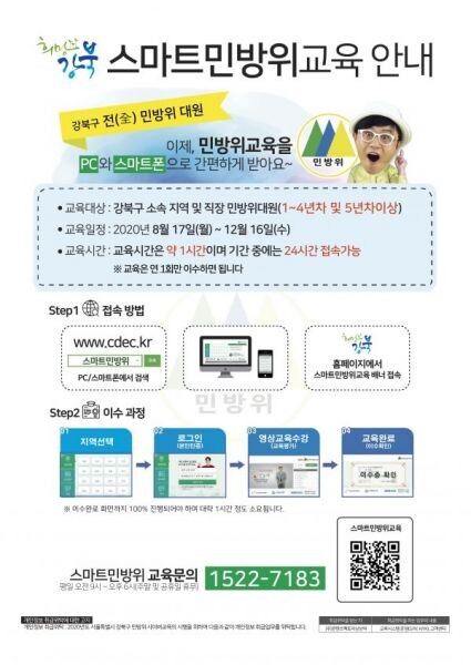 교육 대상자는 8월 17일부터 12월 16일까지 스마트민방위교육 홈페이지에 접속해 1시간 분량의 사이버교육을 들으면 된다.