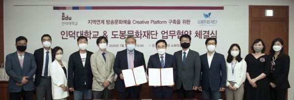 도봉구 도봉문화재단은 지난 7월 15일 도봉문화재단 이동진 이사장과 인덕대학교 윤여송 총장, 도봉구 문화도시 추진단장 등 관계자들이 참석한 가운데 지역연계 문화교류를 위한 협약식을 개최했다.