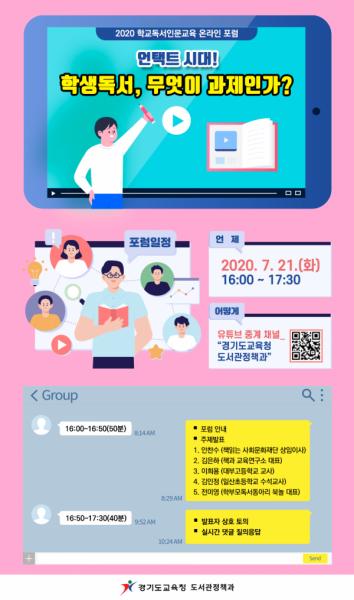 먼저 21일에는 유튜브 채널을 통해 학교 독서 인문교육 담당자, 교사, 학부모, 학생들이 실시간 쌍방향으로 참가하는 ‘2020 학교 독서 인문교육 온라인 정책 포럼’을 연다.
