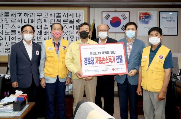 [무한뉴스] 대한적십자사 충남지사가 코로나19 예방 및 확산방지를 위해 ‘사랑의 손소독기’를 태안군에 기탁했다.