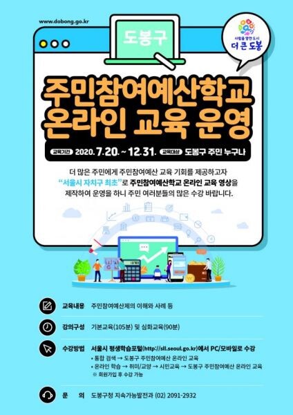 이동진 도봉구청장은 “주민참여예산 온라인 교육을 통해 더 많은 주민이 ‘주민참여예산 제도’에 대한 이해가 높아지길 바라며 주민들의 적극적인 참여와 관심을 부탁드린다”고 말했다.