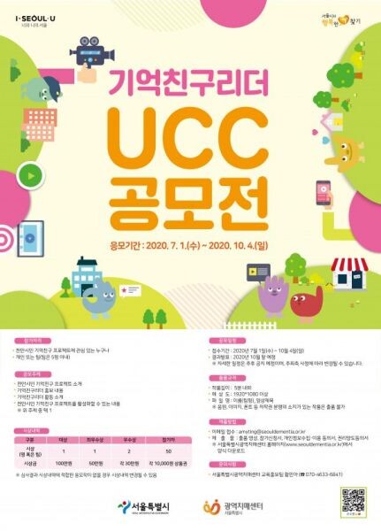시는 2019년에 이어 올해 두 번째 ‘UCC 공모전’을 열고 시민들이 ‘서울시 천만시민 기억친구 프로젝트’를 알리는 영상 콘텐츠를 직접 제작해 기억친구와 기억친구리더에 대한 시민들의 관심과 참여도를 높일 예정이다.