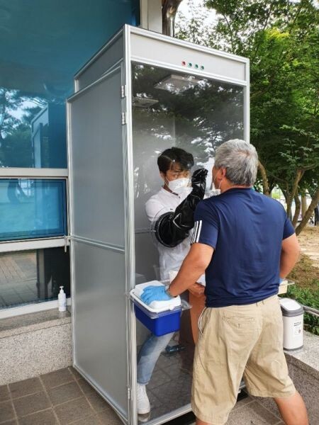 시는 계속되는 확진자 증가와 무더위로 지친 선별진료소 근무자의 근무여건을 개선하기 위한 장비도 설치한 것은 물론 기존 음압 검체 채취실과 워킹스루 진료소를 병행 운영해 신속하고 안전하게 검사를 받을 수 있도록 했다.