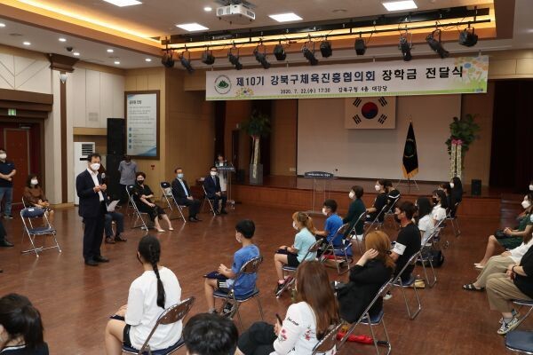 [무한뉴스] 강북구체육진흥협의회가 지난 22일 구청 대강당에서 스포츠 꿈나무 15명에게 장학금을 전달했다.
