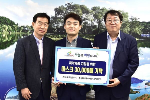 [무한뉴스] 지유글로벌은 23일 제천시와 100억원의 투자협약을 체결한데 이어 관내 취약계층을 위한 마스크 30,000장을 제천시에 기탁했다.
