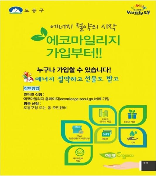 [무한뉴스] 도봉구는 올해 7월 현재 사용되지 못하고 적립되어 있는 에코마일리지가 1억 2,000여 만원에 달한다고 밝혔다.