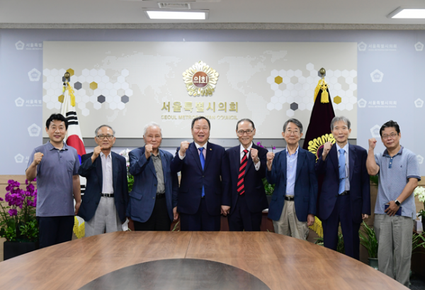 [무한뉴스] 서울특별시의회 김인호 의장은 24일 부민관 폭파 의거 75주년을 기념해, 민족문제연구소 임헌영 소장, 친일인명사전편찬위원회 윤경로 위원장을 비롯해 독립운동가 후손 이항증, 차영조, 장병화 등을 당시 의거 현장인 서울시의회 본회의장에 초청하고 의회시설 관람 및 면담시간을 가졌다.