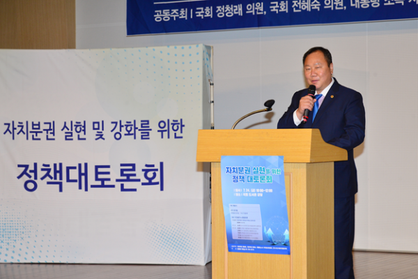이번 토론회는 정청래 국회의원, 전혜숙 국회의원, 자치분권위원회, 전국시·도의회의장협의회가 공동 주최하는 행사로 자치분권 실현을 위한 지방자치법 개정 및 지방의회 위상 강화를 위한 정책지원 전문인력 도입 필요성을 논의하는 자리였다.