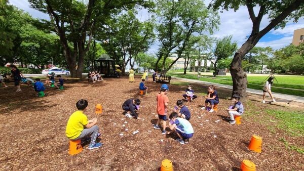[무한뉴스] 7월의 어느 토요일 불광동 혁신파크 피아노숲 광장에 또래로 보이는 초등학생 아이들의 놀이가 한창이다.