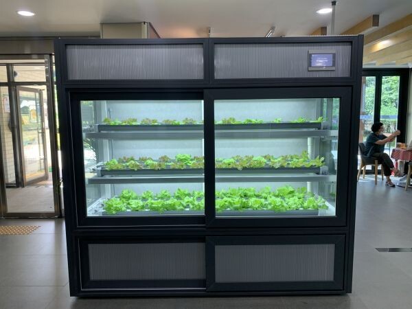 파믹스센터 내부에 설치된 스마트팜은 5.4㎡ 규모, 3단으로 된 식물재배기다.